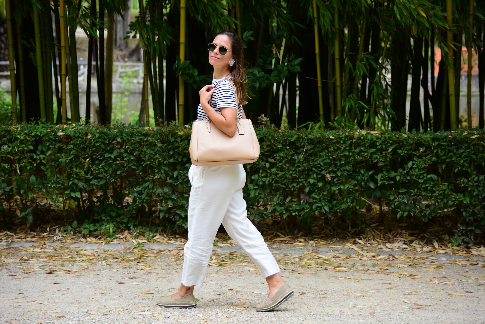 Não sou muito fã de padrões mas, dêem-me riscas e, sou capaz de usá-las todos os santos dias! Neste verão, adoro a combinação com as minhas paper bag trousers, super frescas e confortáveis! Acessorizar o look com uns brincos statement e uma mala estruturada, é para mim a cereja no topo do bolo!