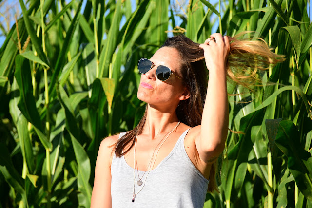 A cornfield, near to Aveiro city, was the chosen scenario for this production! An outfit, very much in line with the previous one, concerning simplicity and comfort, when the little ones in the family are still on vacation!