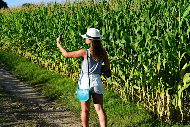 Um campo de milho, aqui bem perto da cidade de Aveiro, foi o cenário escolhido para esta produção! Um visual, muito em consonância com o anterior, no que se refere a simplicidade e conforto, quando os mais pequenos ainda se encontram de férias!